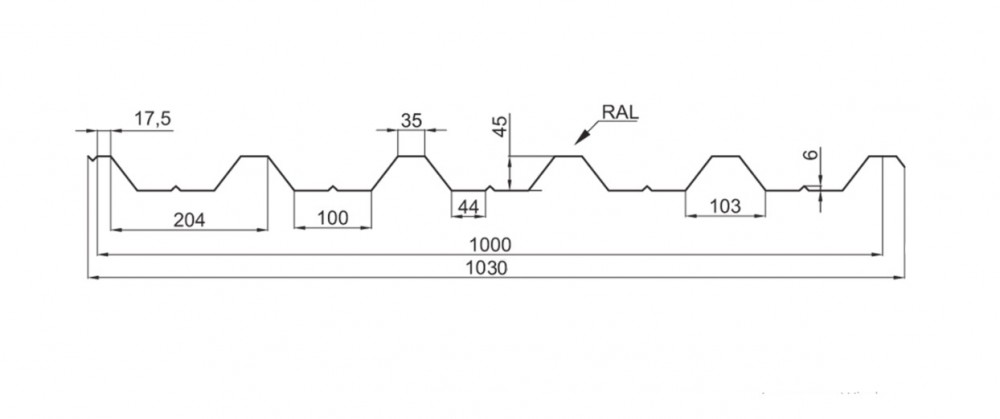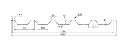 ООО "Доброва" производит профнастил с высотой профиля от 10 до 45 мм: H-10, H-20, H-45 оцинкованный, с покрытием "алюмоцинк", с полимерным покрытием и покрытием Printech. Толщина профилированного листа- от 0,40 до 0,55 мм.